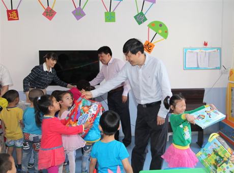 作者:黄飞 金辉 新闻来源:政府办 发布时间:2014-6-4 10:56:51 浏览次数:…… 本站讯 在“六一”儿童节来临之际,5月29日,市委常委、县委书记李波,政府县长璩泽涛深入县第二小学调研幼儿教育及学校基础设施建设工作,看望奋战在教学第一线的教职员工,向小朋友们致以节日的祝贺。县委常委、统战部长李娉,政府副县长刘文革一同调研。 ![]() 李波、璩泽涛一行在参观了学生的绘画、手工制作后,将节日礼物一一分发到小朋友手中,向大家表示节日的问候。李波一行还为留守儿童送去书包和文具盒等学习用品,鼓励孩子们好好学习,健康成长。教体等相关部门和社会各界要重视关心留守儿童的成长,注重留守儿童的习惯性格养成和兴趣培养,为留守儿童健康快乐成长提供良好的环境。 李波等领导还详细了解第二小学的规划设计、附属设施工程建设进度、存在的问题与困难等情况,对学校的操场建设、学生进出道路、绿化、周边环境治理等问题提出了具体建议;要求县教体等有关部门进一步解放思想、勇于开拓、借力发展,做好县第二小学的师资力量配备,切实解决县城区学龄儿童入学难问题,努力把县第二小学打造成环境优美、设施齐全的示范学校。