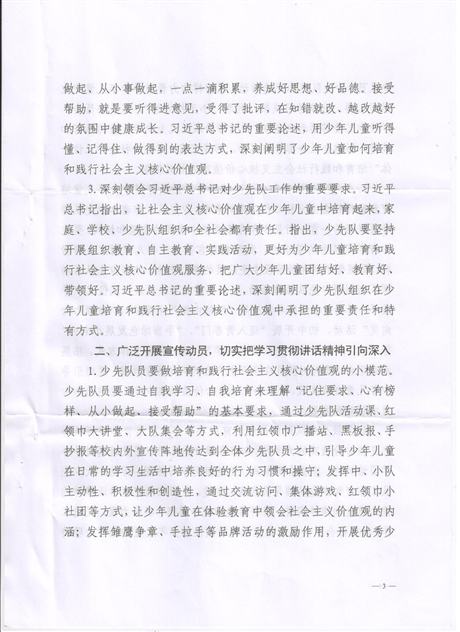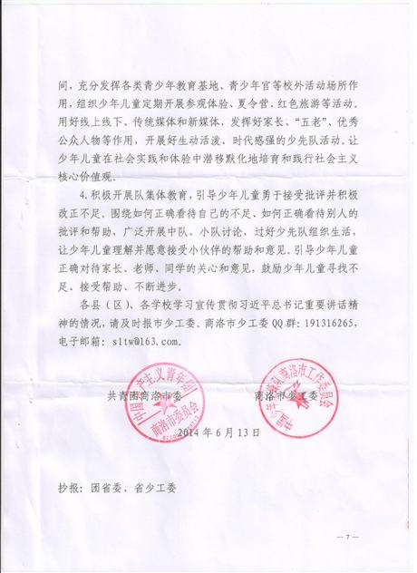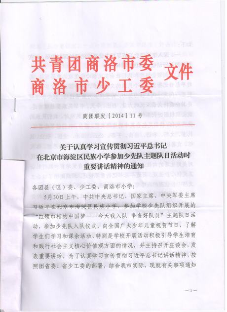 各镇团委、学校团委、少先队大队部: 为认真学习宣传贯彻习近平总书记讲话精神,按照团市委、市少工委的安排部署,现将《关于认真学习宣传贯彻习近平总书记在北京市海淀区民族小学参加少先队主题队日活动时重要讲话精神的通知》转发给你们,请结合实际,认真贯彻落实。 bet5365娱乐场 镇安县少工委 2014年7月11日