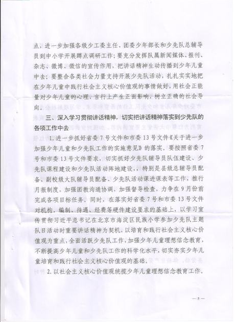 转发团市委、市少工委关于认真学习宣传贯彻习近平总书记在北京市海淀区民族小学参加少先队主题队日活动时重要讲话精神的通知