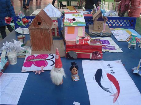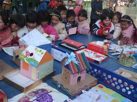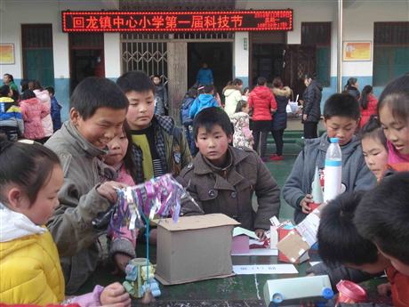 作者:团县委 发布时间:2015-1-7 10:00:24 浏览次数:…… 12月29日下午,回龙镇中心小学全体师生精心设计准备了一个月的科技节展评活动,在学校操场上成功举办了。本次活动以“环境保护”为主题,培养学生的创新精神和实践能力,倡导“人人参与,人人动手,个个实践”,各班学生在班主任教师的精心安排和组织下踊跃参与,上报的参赛作品共305件,参赛率85.1%,作品整体质量较高。三一班张芮宁的《能动的飞机》和四一班蔡晔的《梦之屋》创意新颖、制作精美、科技含量高被评为特等奖。评委组对参赛的作品进行了公平公正的打分,评选出了3个优秀团体奖、2个特等奖和20个优秀奖。