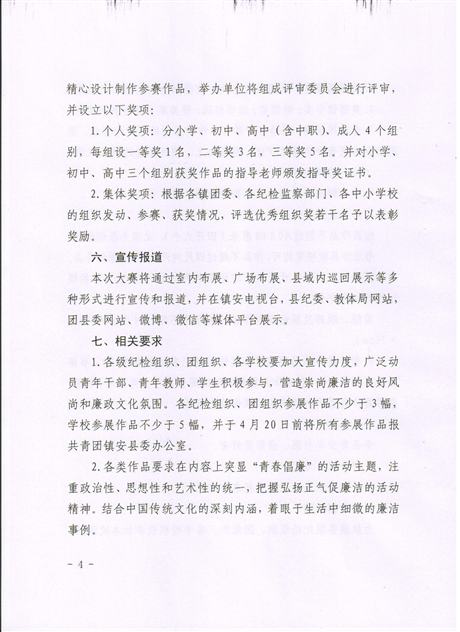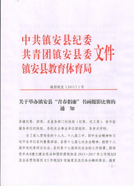 关于举办镇安县“青春倡廉”书画摄影比赛的通知