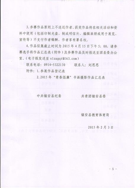 号》)安排,现决定举办镇安县“青春倡廉”书画摄影比赛。现将有关事项通知如下: