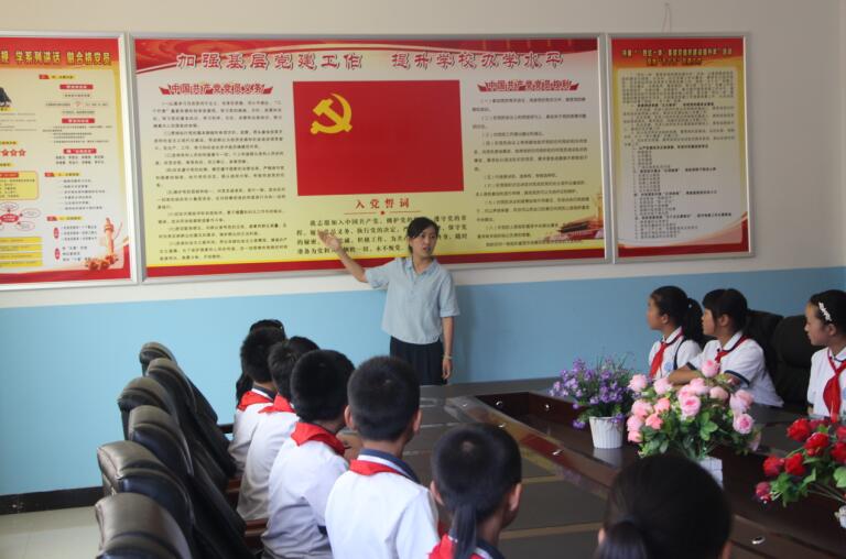 作者:团县委 发布时间:2016-7-5 13:58:12 浏览次数:…… 为庆祝建党95周年,团镇安县委积极组织各级共青团、少先队开展镇安县青少年纪念建党95周年系列活动。 7月1日当天,团镇安县委干部来到县第二小学少先队大队部,与这里的红领巾们共同举行“红领巾心向党”主题队会,组织少先队员参观党史陈列室、讲解“党-团-队”的关系,增进党团队组织意识衔接教育,帮助青少年“扣好人生第一颗扣子”。