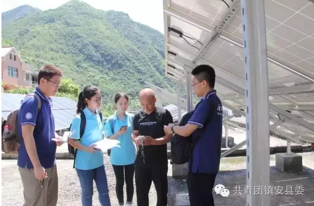 同学们的到来得到当地群众热烈欢迎,为了方便同学们更全面细致地了解光伏发电项目的有关情况,地方工作人员将镇安编写的《光伏发电知识200问》赠送给实践团作为调研参考。从交谈中同学们了解到国家对安装光伏发电设备的用户给予大力支持,地方政府在推行过程中也不遗余力,通过政策宣讲、视频宣传、知识讲座等多种途径,普及专业知识,使居民了解光伏发电会带来的长久利益,树立起接受新能源、使用新能源的意识。 当地居民彭方辉是全村第一个光伏发电设备使用者,更是光伏发电项目新模式的尝试者。据了解,彭先生家的环境条件难以达到光伏发电设备安装要求,他通过租用达标屋顶的方式,安装了机组设备。